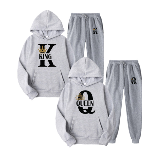 2022 Fashion Couple Sportwear Set KING or QUEEN Printed Lover Hooded Suits Hoodie and Pants 2pcs Set Streetwear Men Women Cloths
