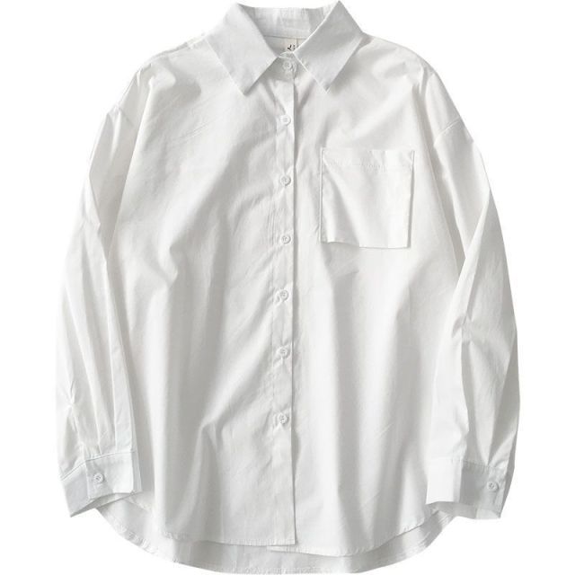 EBAIHUI 2020 Autumn Long Sleeve Loose Student Blouse Shirt Women White Black Turn Down Collar Casual Oversized Shirt Vintage Top