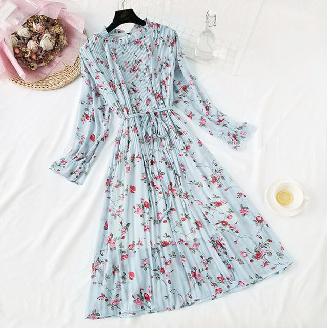 Elegant Polka Dot Women Dress Female Casual Flare Sleeve Office Chiffon Dot Print Dresses A-line Vintage Sweet Clothing Vestidos
