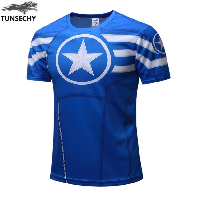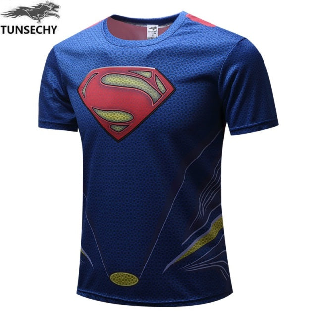 Fashion men's T-shirt summer short-sleeved 3D red and blue spider print sports fitness shirt loose streetwear
