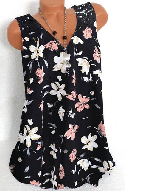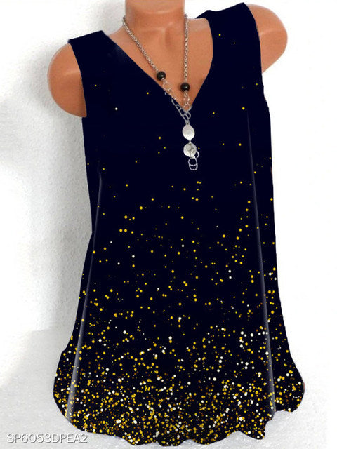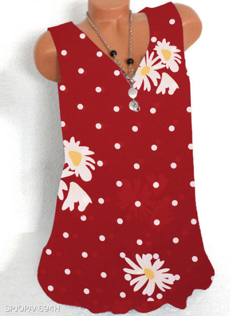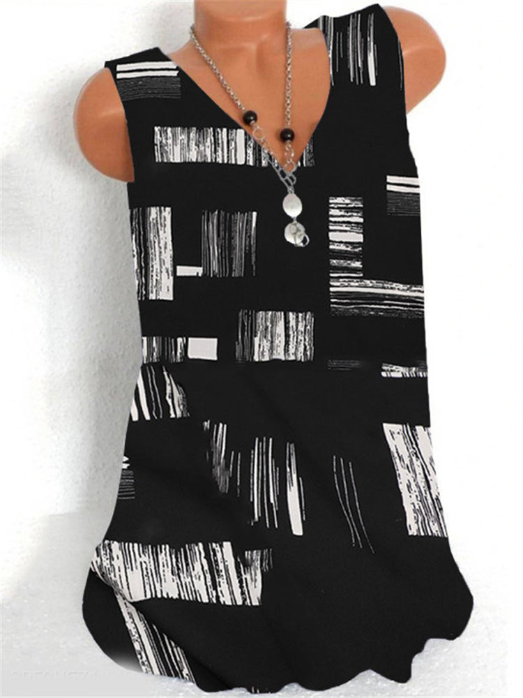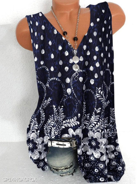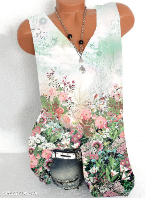 Fashion printing large size women T-shirt V-neck sleeveless vest casual ladies T-shirt women tops