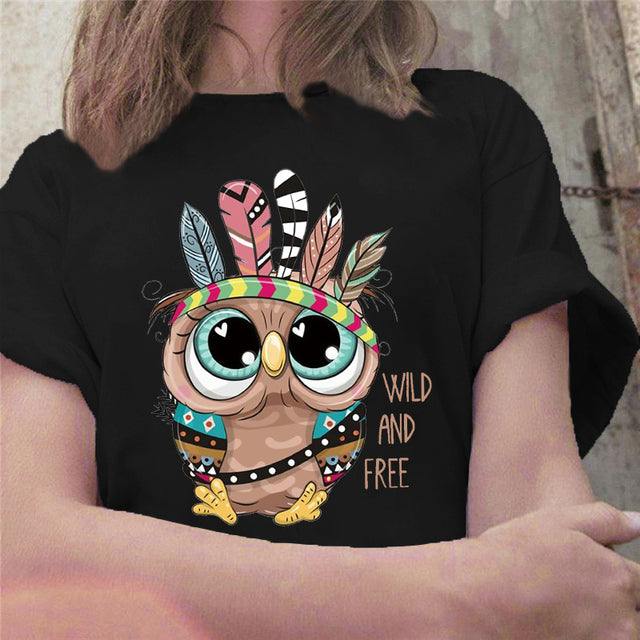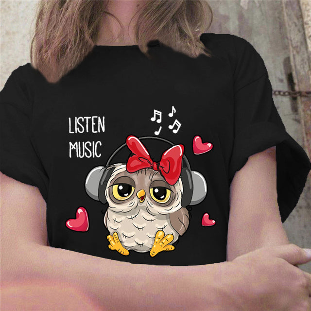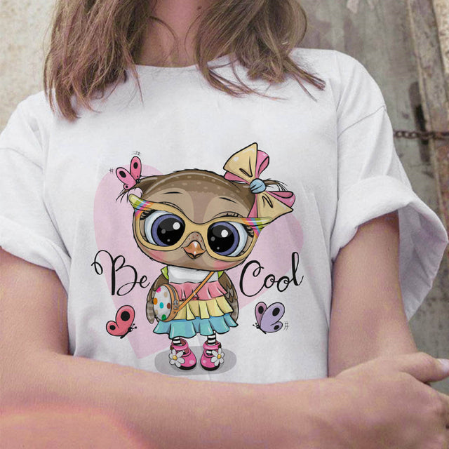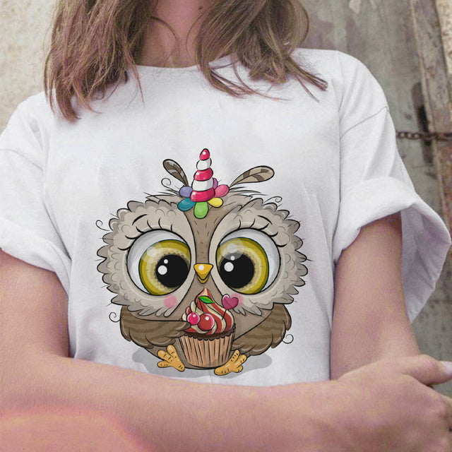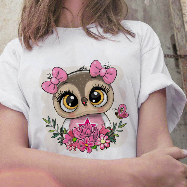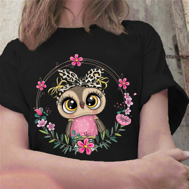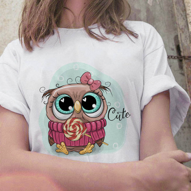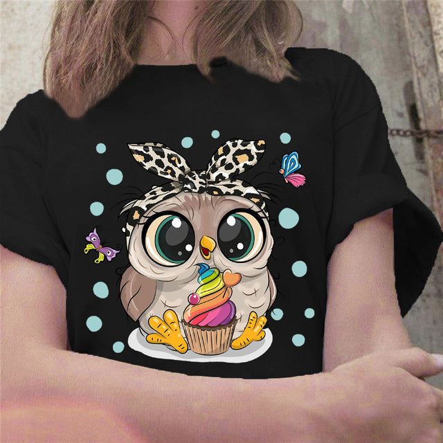 Fashion Trend New T-shirt Cute Owl Graphic Printed Female T shirt Casual Harajuku Crew Neck Ladies Tshirt