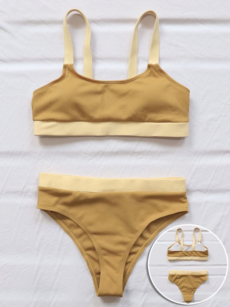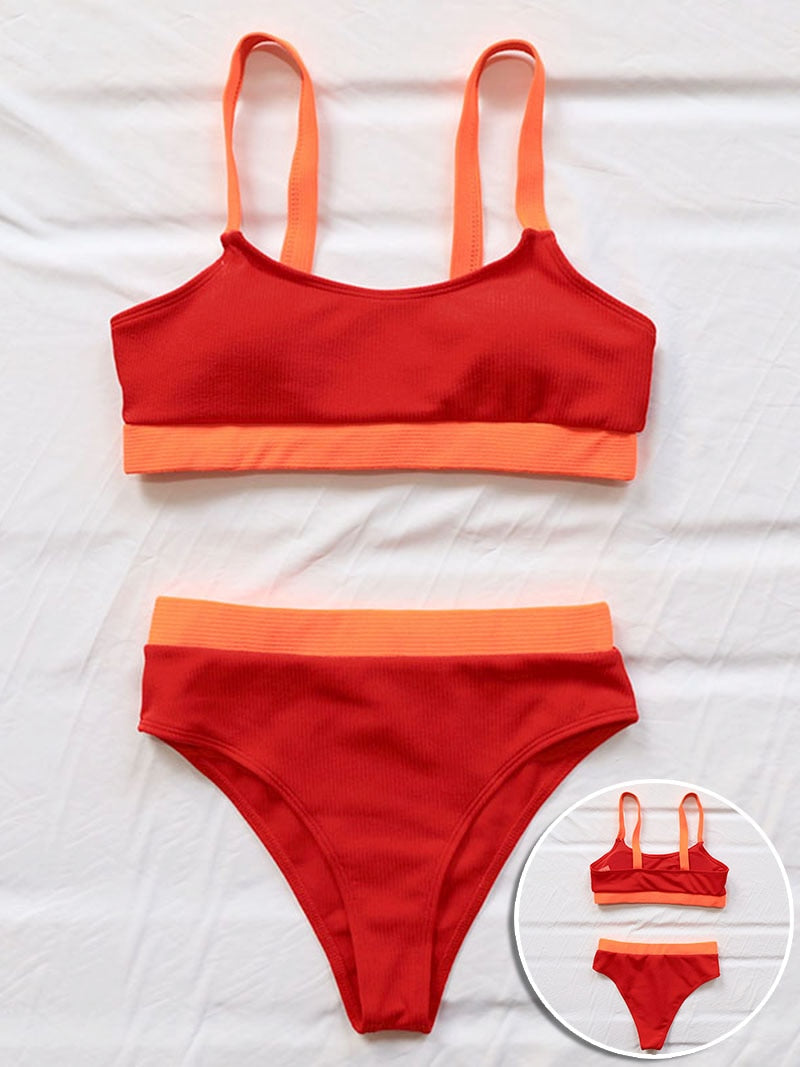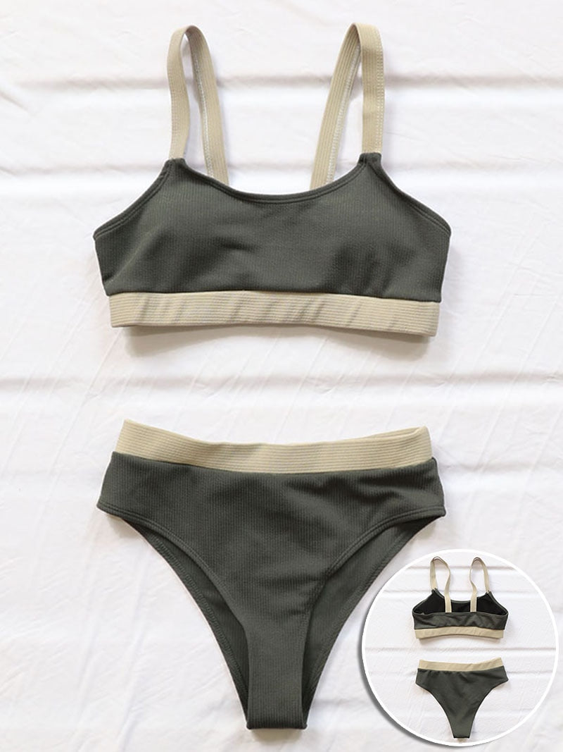 INGAGA High Waist Bikini Women's Swimsuit 2022 New Swimwear Ribbed Biquini Sexy Push Up Bikini Set Colorblock Bathing Suit Women