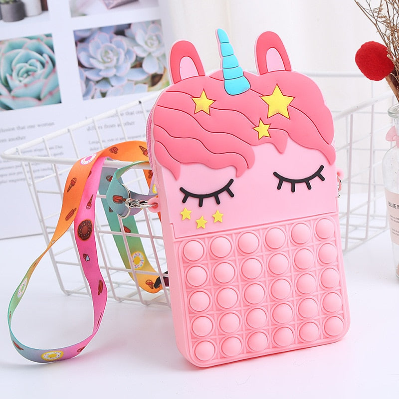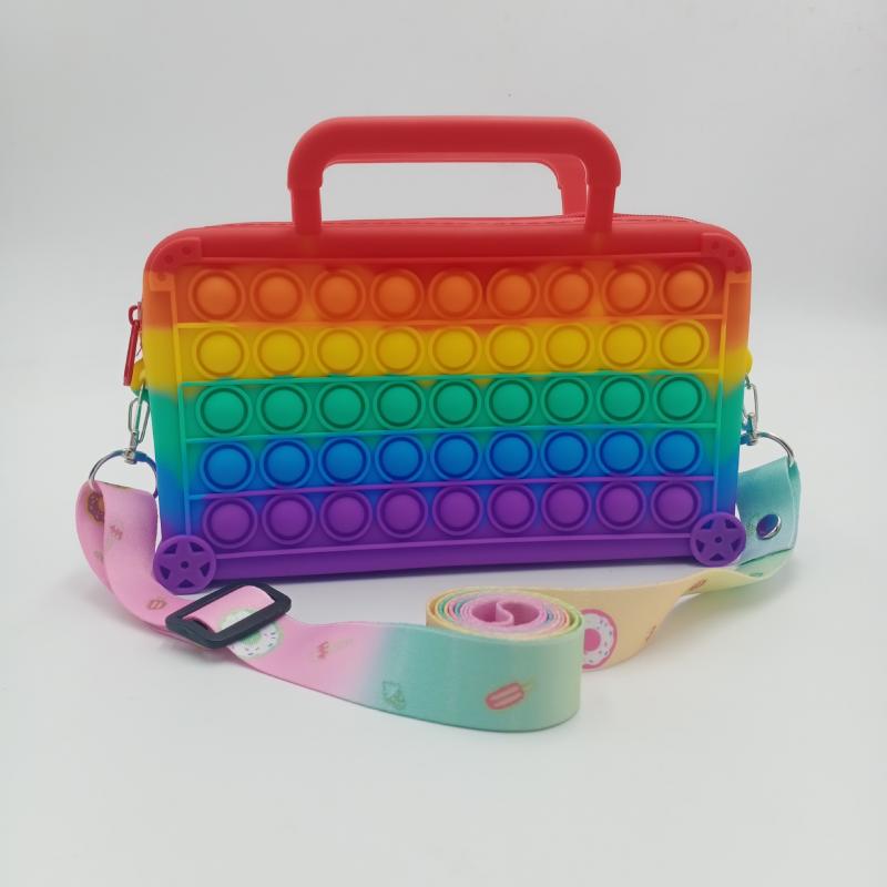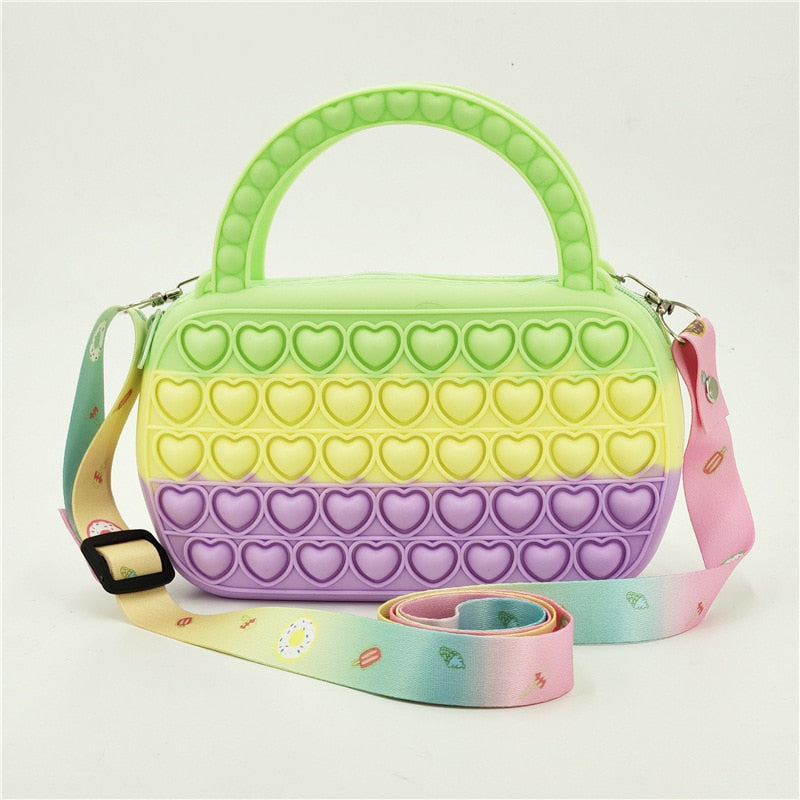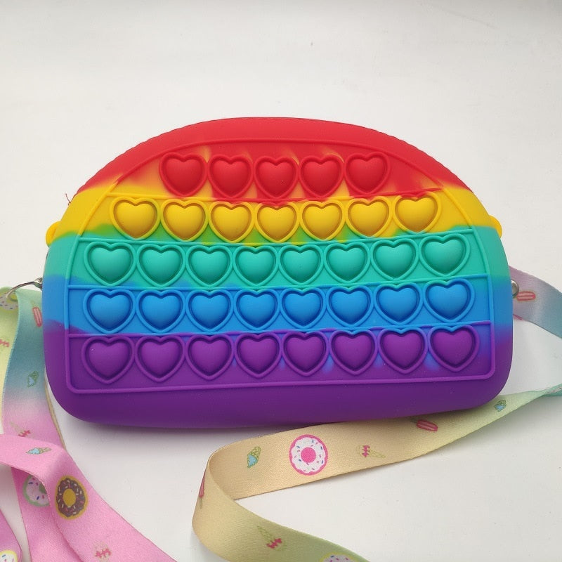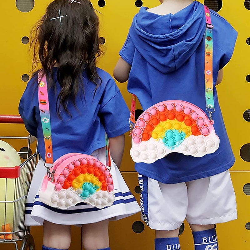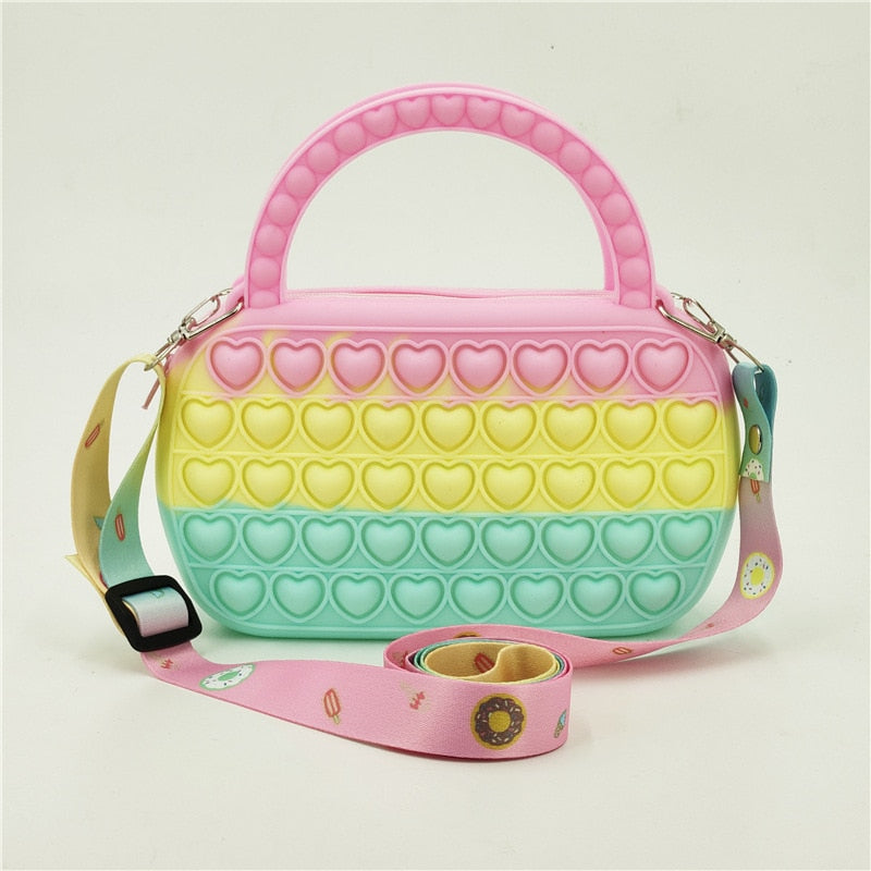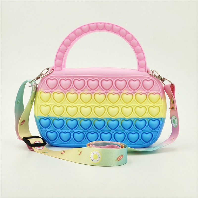 Kawaii Rainbow Bag Pop Fidget Toys It Push Bubble Women's Wallet Bag Kids Coin Purse Simple Dimple Anti Stress for Childrens