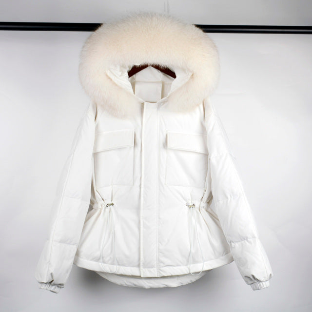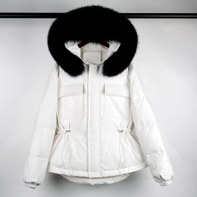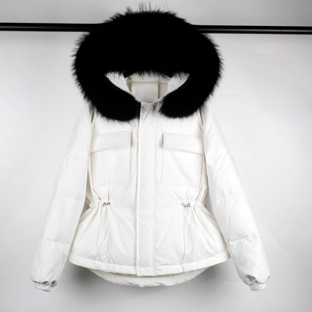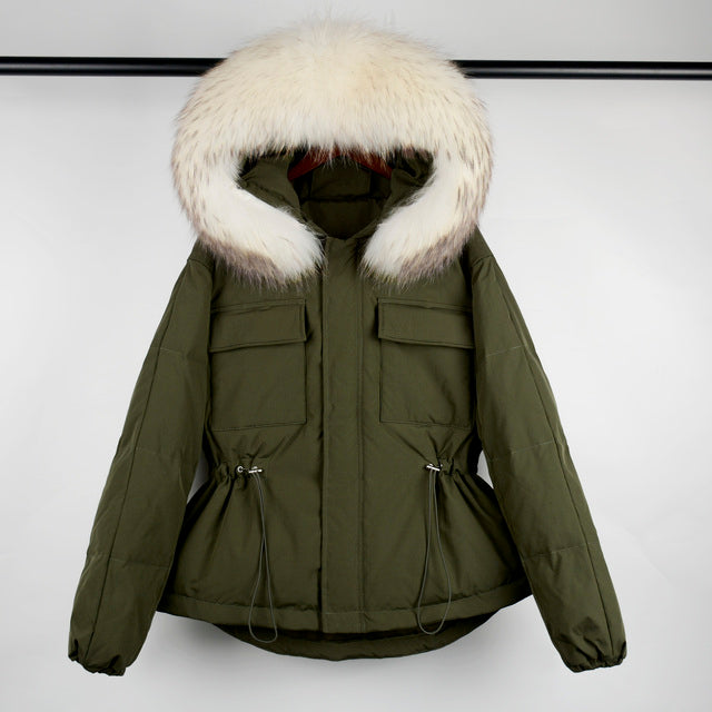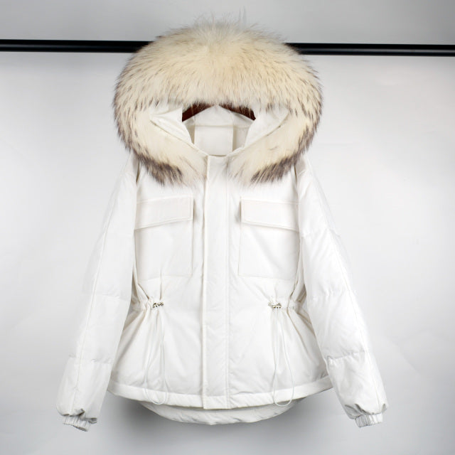 winter jacket women fur collar coat: winter jacket women parka raccoon,white duck down jacket