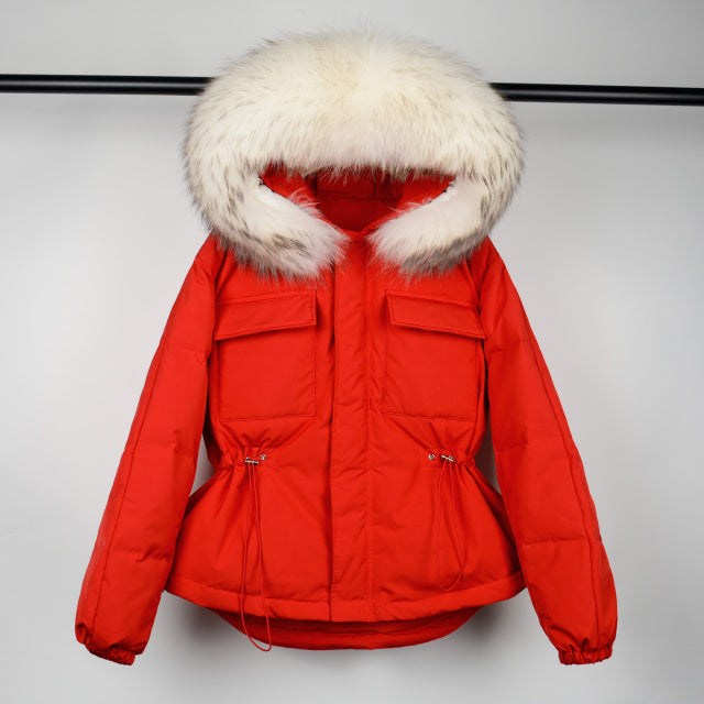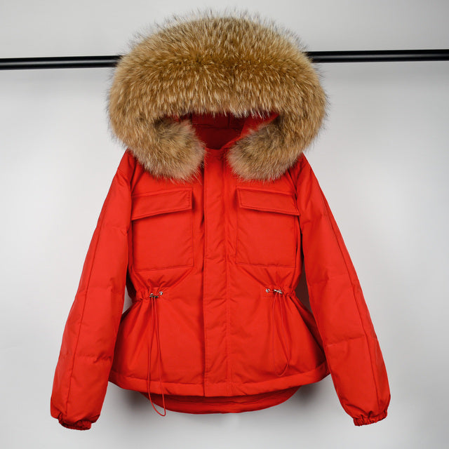Large Real Raccoon Fur Hooded Winter Down Coat 90% Duck Down Jacket Women Short Female Puffer Feather Waterproof Parkas