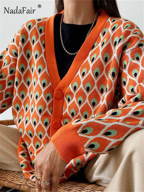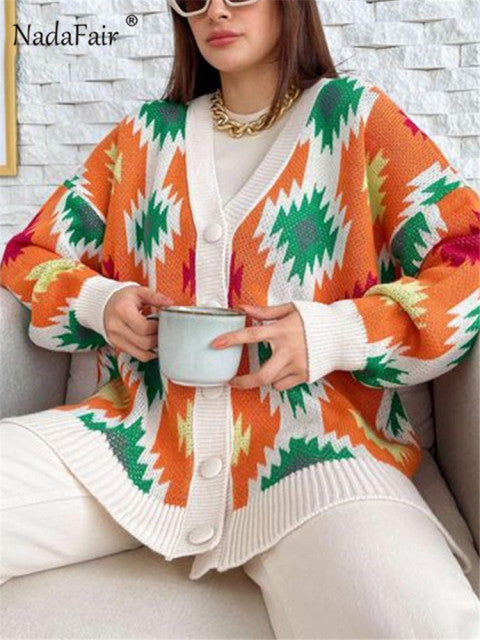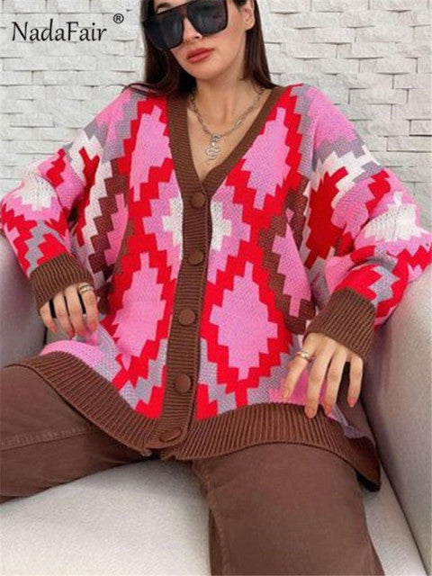 Nadafair Milti Patterned Cardigan Women Fashion Plus Size Winter Sweater Autumn Loose Casual Oversized Knitwear Cardigan Muje