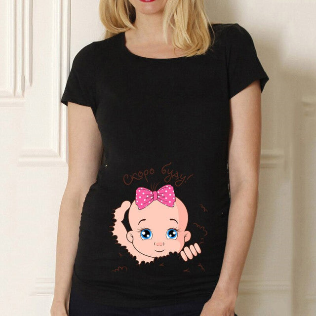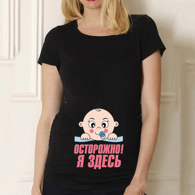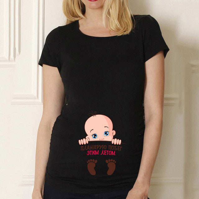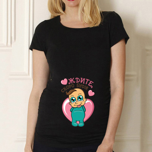 New Cute Pregnant Maternity Clothes Casual Pregnancy T ShirtsBaby Print Funny Pregnant Women Summer Tees Pregnant Top Streetwear