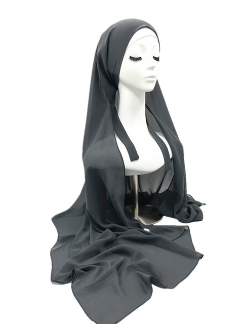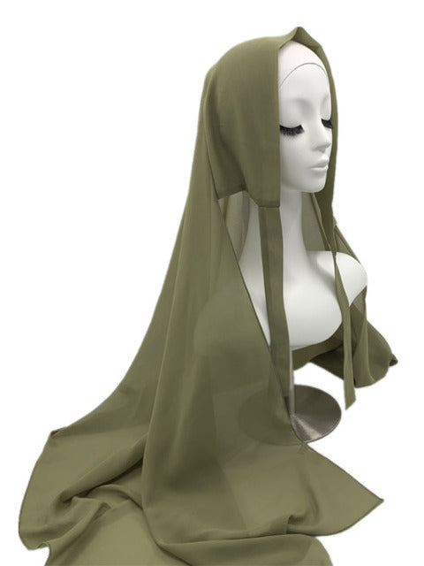 Plain Color Chiffon Hijab Scarf with Bandage Non-Slip Muslim Women Breathable Islam Long Hijabs Headband Fashion Turban Headwrap