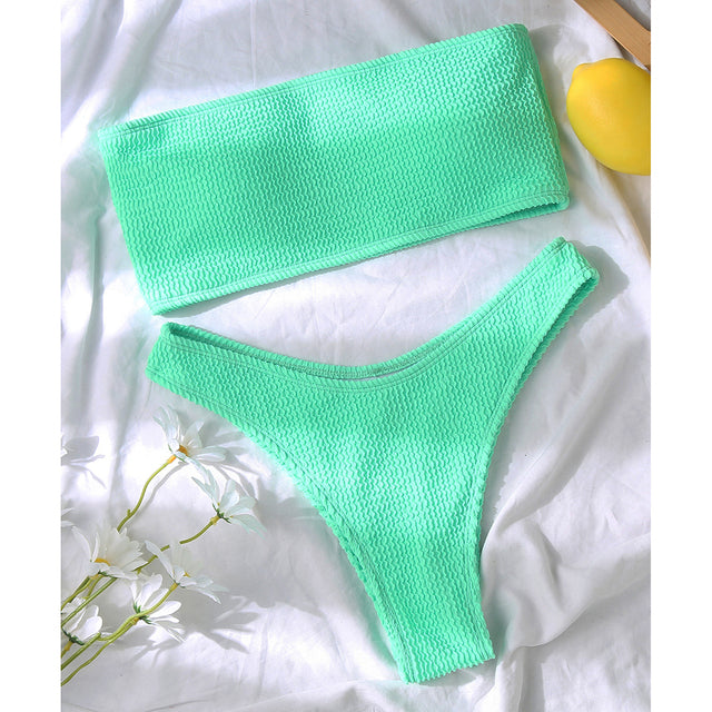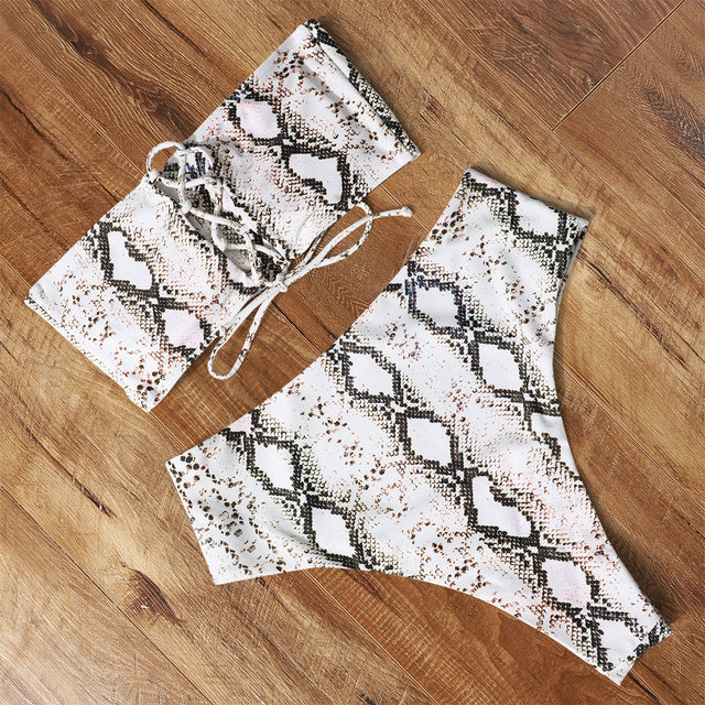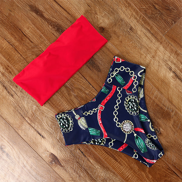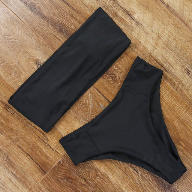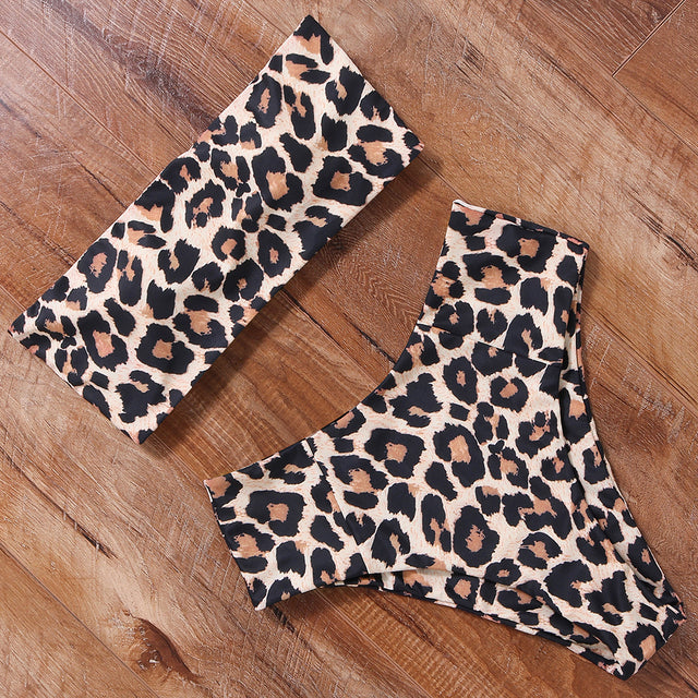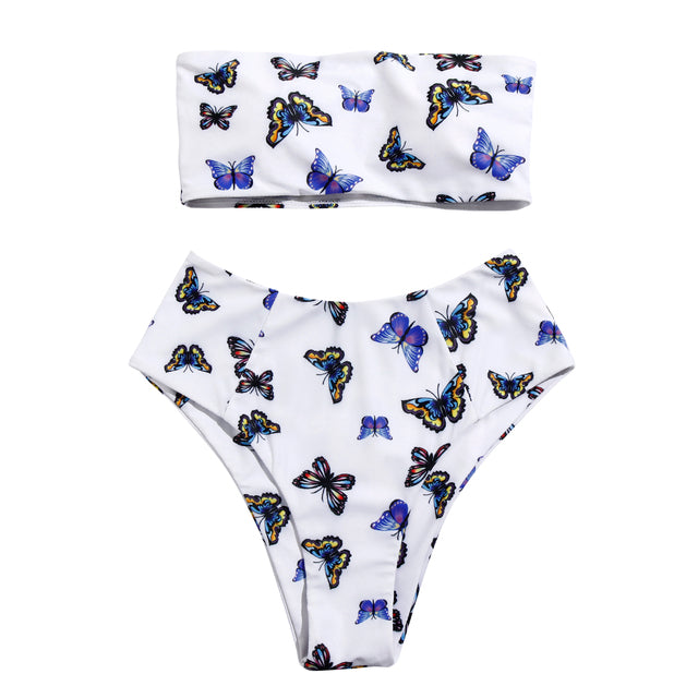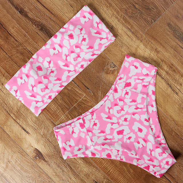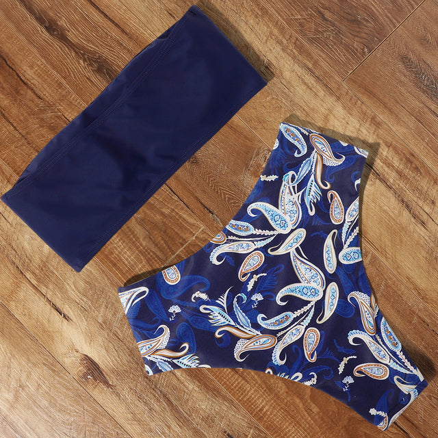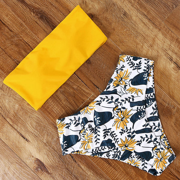 Sexy Floral Bikini Set 2022 Swimsuit Mujer High Waist Bathing Suit Black Swimwear Women Push-Up Leaf Bandeau Brazilian Biquini