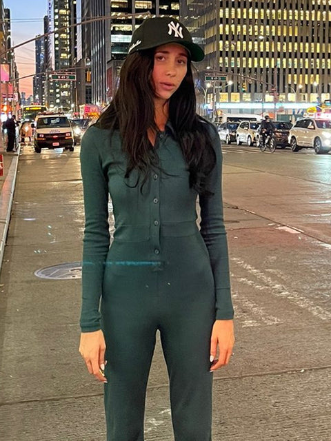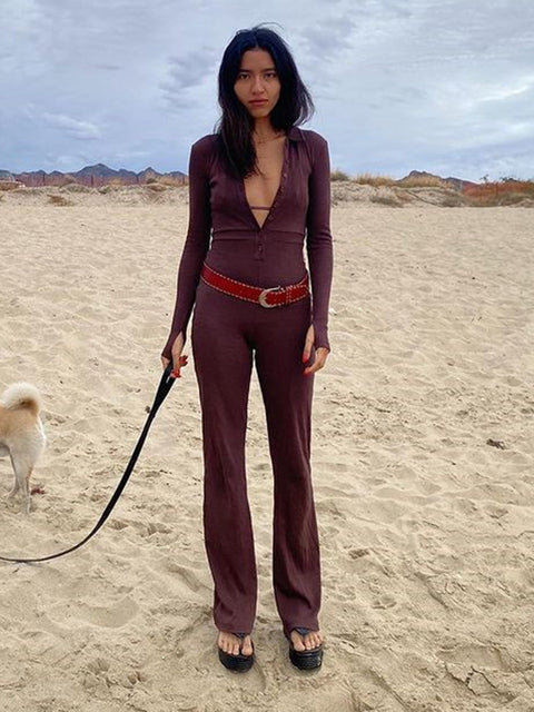 Sibybo Long Sleeve Ribbed Jumpsuits For Women Brown Button Wide Legs Jumpsuit Romper 2021 Femme Autumn Winter Casual Overalls