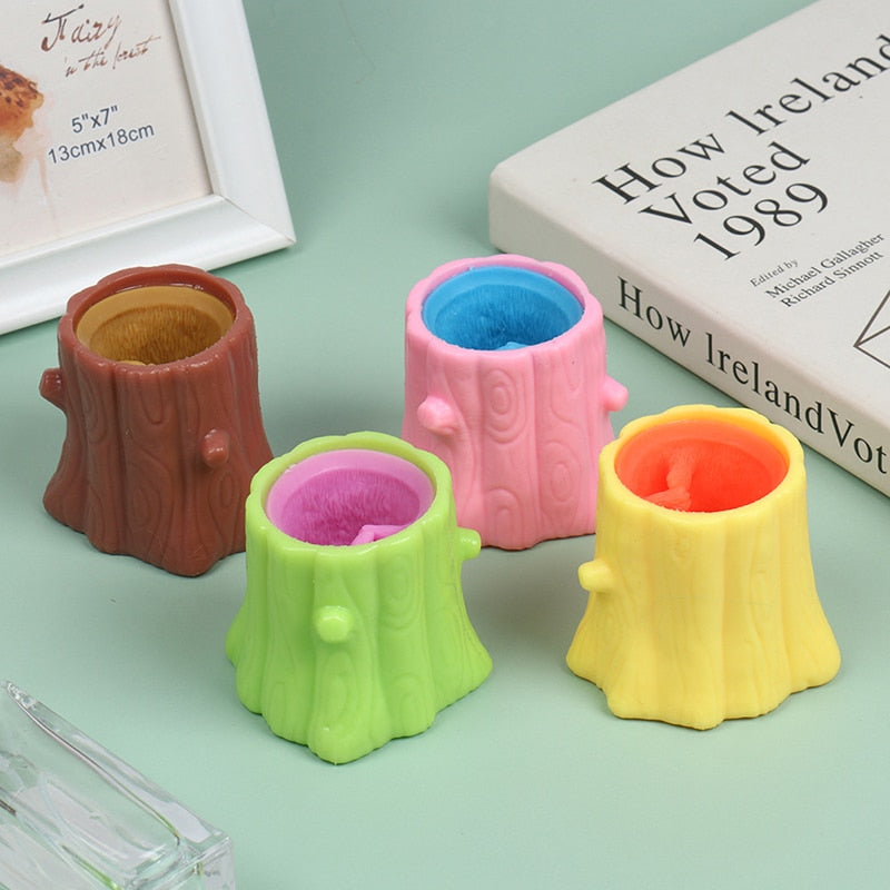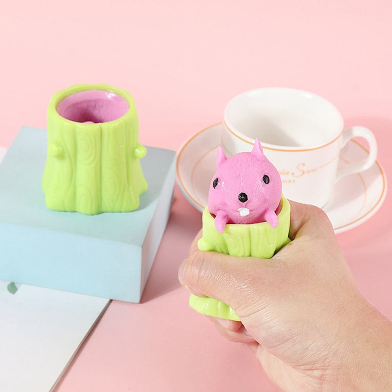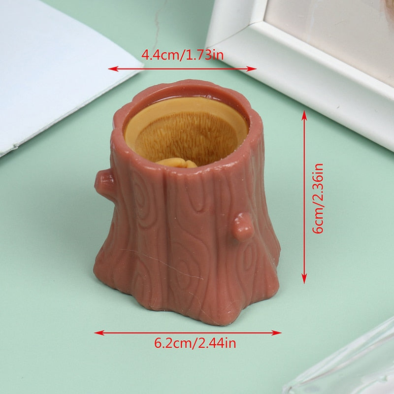 Squeeze Squirrel Cup Antistress Childrens Fidget Toy Evil Decompression Tree Stump Miniature Weird Play for Kids Adults