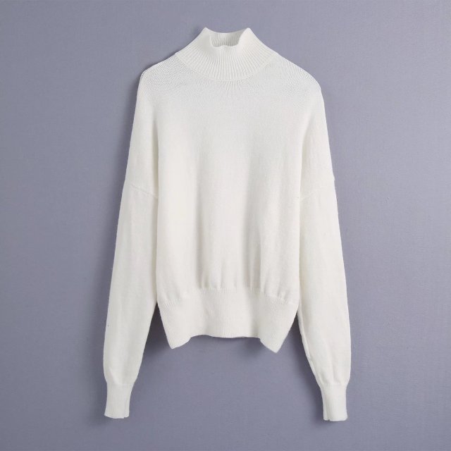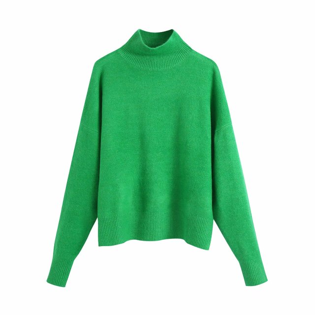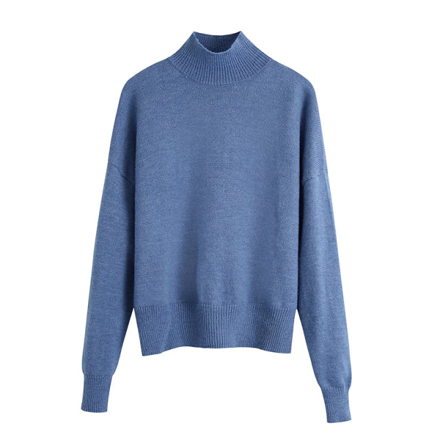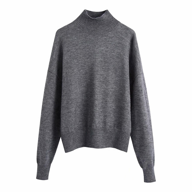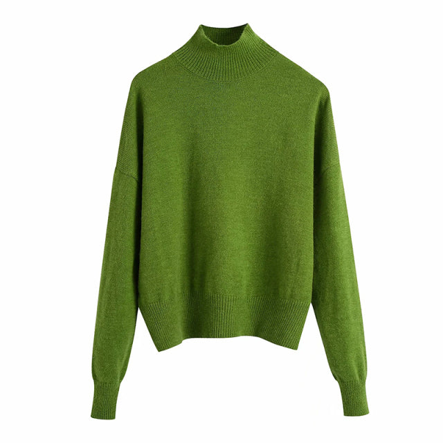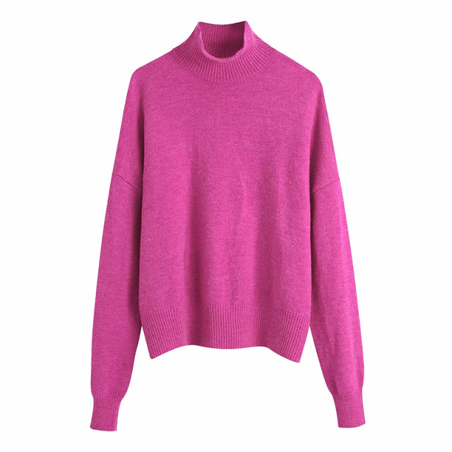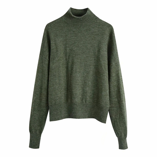 Willshela Women Fashion Solid Knit Sweater Top Long Sleeves High Neck Vintage Female Knitted Sweaters Pullover Chic Tops