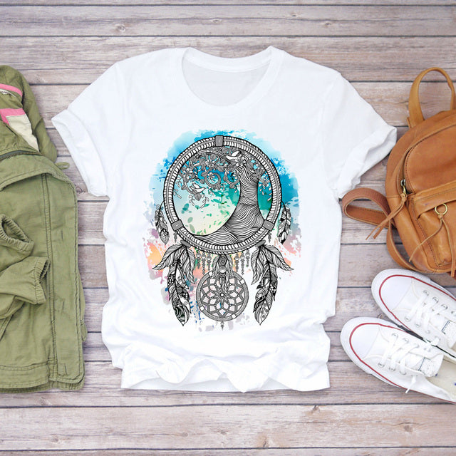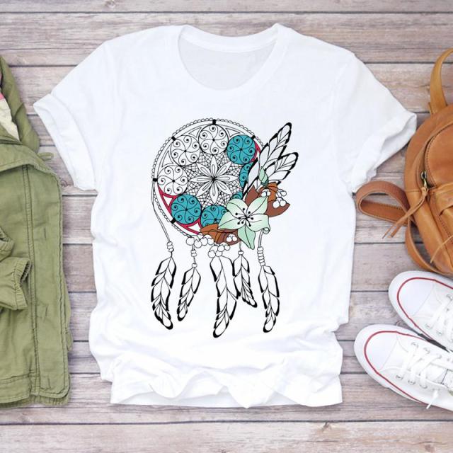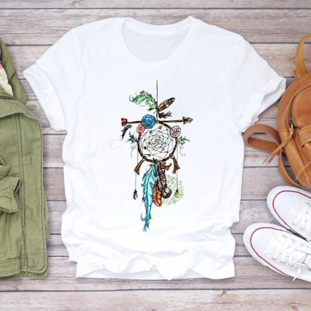Women 2021 Summer Short Sleeve Dream Feather Fashion Print Lady T-shirts Top T Shirt Ladies Womens Graphic Female Tee T-Shirt